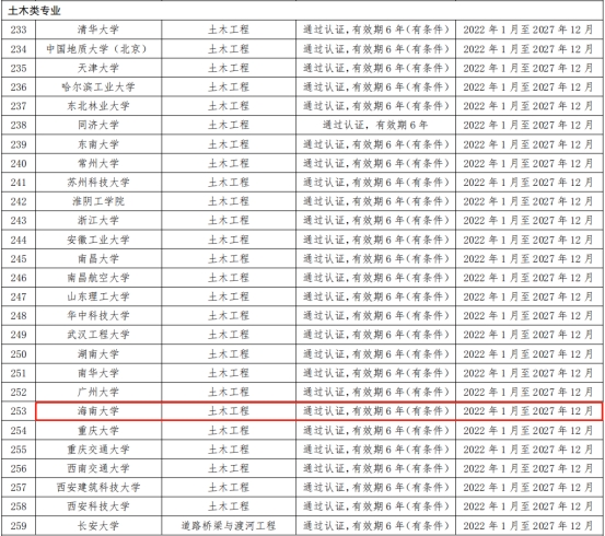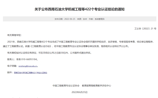 近日,中国工程教育专业认证协会、教育部高等教育教学评估中心发布了工程教育专业认证结论,全国高校共有422个专业通过认证,9193官网土木工程专业位列其中,有效期为6年(2022年1月—2027年12月)。截至目前,我校已有食品科学与工程、化学工程与工艺、土木工程三个专业通过认证,充分体现了我校专业建设水平与成效,促进了本科人才培养质量提升。